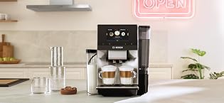 Experience the joy of making your own barista-quality coffee with the Bosch 800 Series VeroCafe. This fully automatic espresso and coffee machine lets you discover the widest variety* of 35+ different beverages, all available in the Home Connect app with just one swipe. Customize every cup exactly how you like it and save your favorite coffee creations — from Americano to Caffe Crema. The Aroma Max System delivers consistent coffee quality and grinds your favorite beans with an optimally controlled flow rate, as well as the ideal temperature and amount of water for each drink. Enjoy a creamy latte macchiato, a bold ristretto, or a smooth flat white — all at the touch of a button on the user-friendly Active Select Display. Personalize your coffee to your taste by choosing one of the aroma strength levels. Enjoy ultimate convenience with key features, like cup illumination and the guided cleaning and descaling program, Calc'n Clean. • Active Select Display • Home Connect app • Double Cup • Milk Express Comfort (Integrated Milk Container) • 3 aroma options plus 4 coffee strength options • Coffee Pot Function • Cup Warmer • Dimensions (WxHxD): 12 1/6 in x 15 in x 18 2/5 in *Select models. Based on the number of beverage types that Bosch countertop fully-automatic espresso machine (“FAEM”) with Coffee World can make compared to other non-commercial countertop FAEMs, as of January 2024 in the U.S. and Canada.