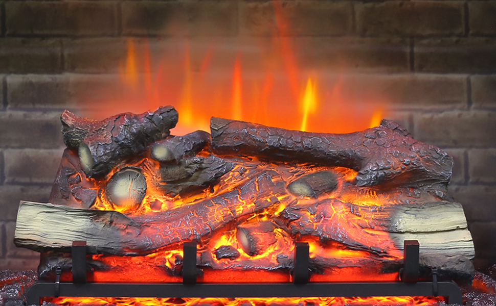 Classic and realistic look of flickering logs. lively flame. crackling sound and faux brick all make the fire just look like a real wood burning or gas fireplace. The flame effects can be used with or without heat. you could use heater during winter season and flame only for other seasons for decorating.