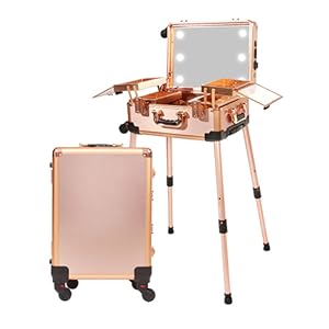 【FREE-STANDING WORKSTATION】- Sturdy telescoping legs can be installed and adjusted to keep the case 4 adjustable height with 16.3'(41.5cm)/24.4'(62cm)/26.6'(67.5cm)/28.5'(72.5cm) off the floor. great for salon use. shopping mall display. home and freelance makeup artists and dance competition need; Legs' bottom bowl-shaped feet also adjustable to fit uneven floor; Telescoping handle and 4 detachable wheels with 360° movement for easy transportation.