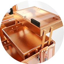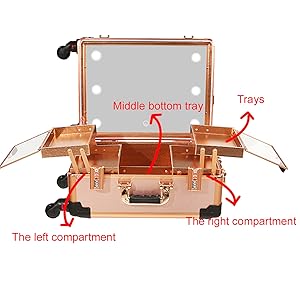 【COMPARTMENT LAYOUT】- Open the case to reveal 4 storage trays(removable) and other 3 compartments that accommodate all your beauty supplies neatly organized.【PREMIUM QUALITY & LOOK】- sturdy aluminum frame. reinforced corner. MDF exterior and PU interior make this makeup case last for years; widely used in fashion runway as temporary makeup station and beauty travel luggage.