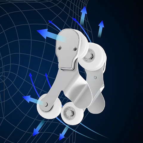 Located in the back portion of the calf massager are spinning rollers with 1 roller that provides a smooth kneading style massage. On the bottom of the foot massage rollers that spin along the arch of the feet which is complimented by airbag massage. As the airbags inflate the feet are pushed down on the spinning rollers increasing the intensity.