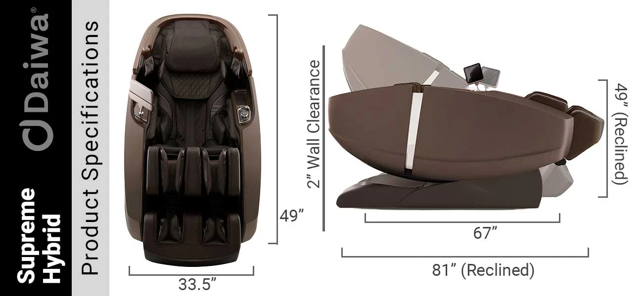 Unlike massage chairs with a cumbersome legrest unit that feels detached from the rest of the chair. the Supreme Hybrid's form factor wraps all parts into a unified. pleasing rounded body.Space-saving round shape