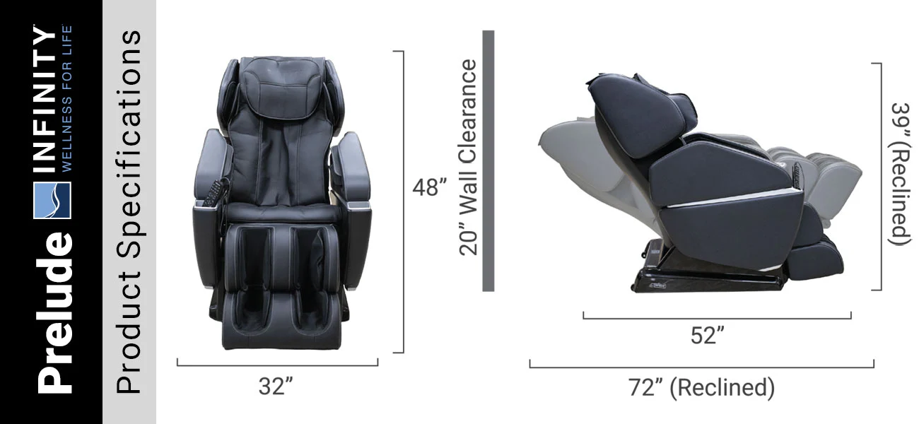 The beauty of the Prelude is in its simplicity. One of the latest from Infinity. this massage chair provides a premium massage experience. Its intuitive design and sleek style make it the perfect fit for any user and any home or office.Quick Facts