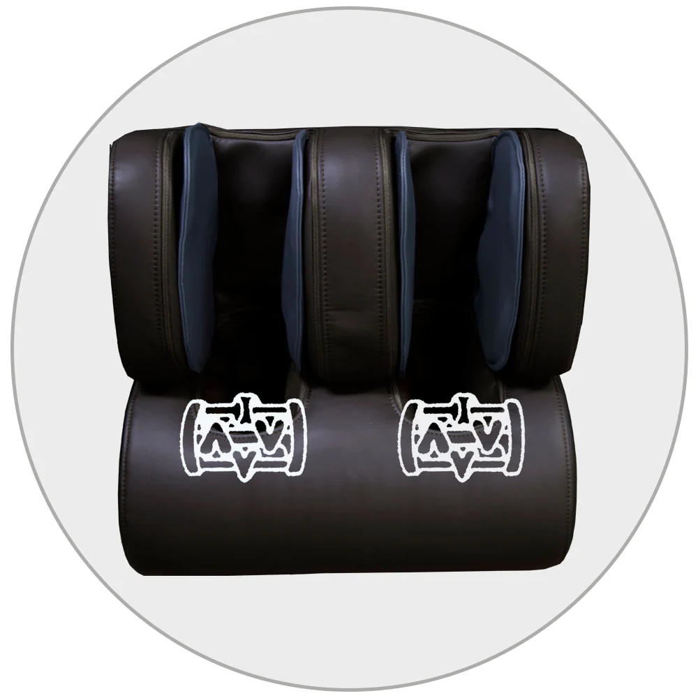 OS-Hiro LT has a spinning reflexology massage roller located on the bottom of the feet that provide a soothing kneading style application. As the roller spins. it will stimulate acupuncture points and as the air bags inflate it will generate a much deeper massage along the bottoms of your feet. During the rolling massage. 4 airbags will offer you compresses the feet and calf areas at the same time.