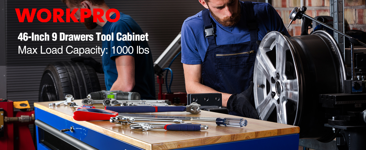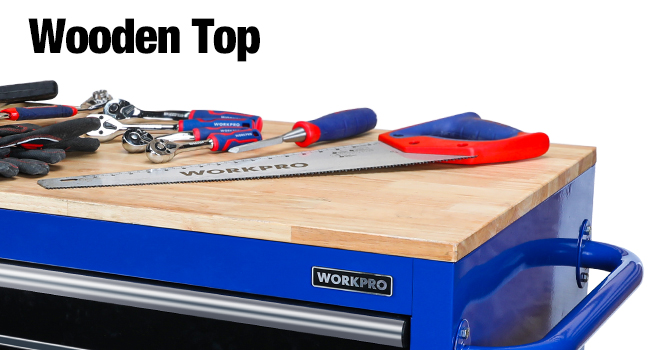 - 【Easy to Assembly】If you'd love to tackle bigger projects in your workshop or garage. but lack the space for a separate workbench and tool chest. the WORKPRO 46-Inch tool chest with a hardwood top is a good choice. It is easy to assemble with a double-side mountable handle. which will be suitable for your usage habits. and equipped with enough hardware to install the handle and casters.