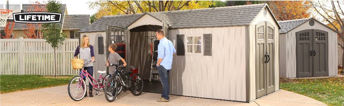 Lifetime's 20-foot West Garden Building not only offers superior strength and durability. but it also has an attractive appearance and design that accentuates the beauty of your backyard. Doors are conveniently and centrally located. making it easy to access your storage space without having to crawl over things to access items stored behind. Innovative design and durable construction create the perfect solution for your storage needs.
